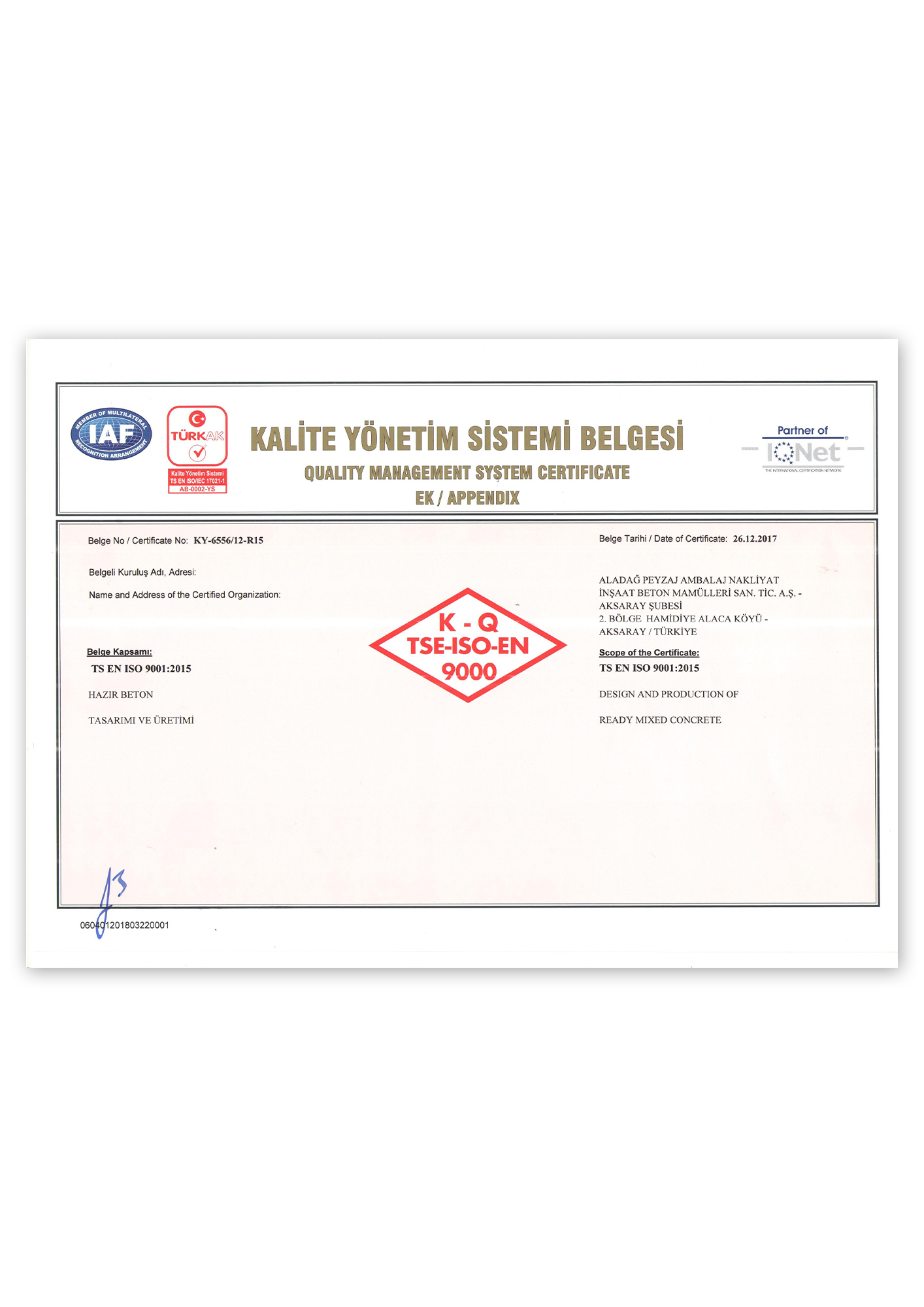ALADAĞ BETON Kırımlı Mah. Necmettin Erbakan Bulvarı 135. Cad. No:428 Merkez/AKSARAY info@aladaghazirbeton.com